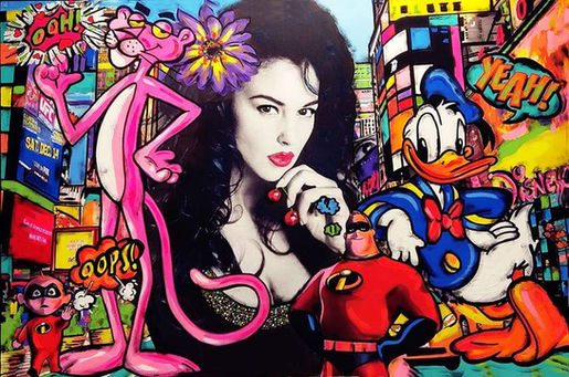 Bien que Robert Sgarra aime créer et innover en termes de supports il ne délaisse pas pour autant la toile sur laquelle se mêlent les personnages de pop culture tels que Mickey Mouse, Picsou, Popeye, Betty Boop et des grandes figures du cinéma comme Marylin Monroe, Brigitte Bardot, Audrey Hepburn...